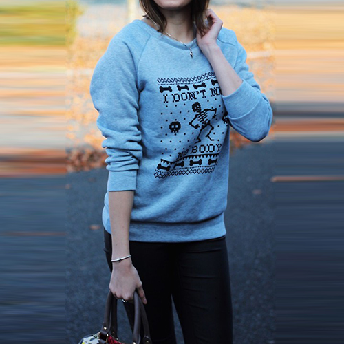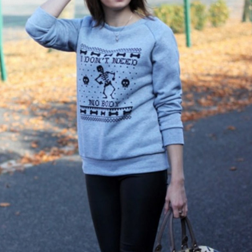 elements into your style. This sweatshirt is a perfect combination of these elements. Letters and skull printed