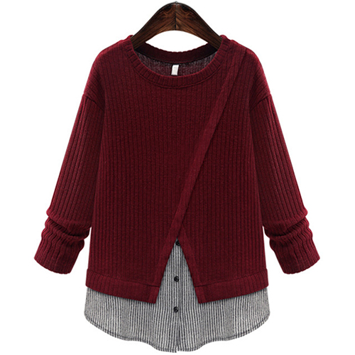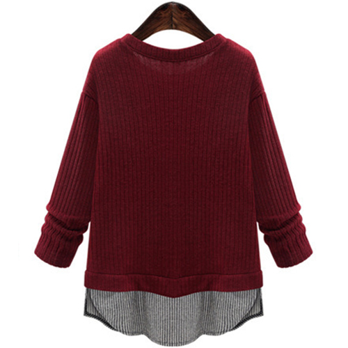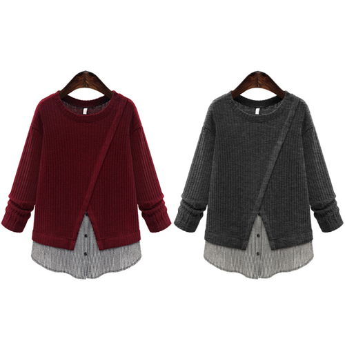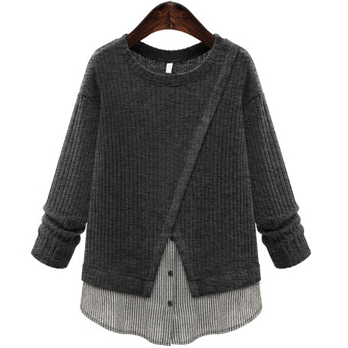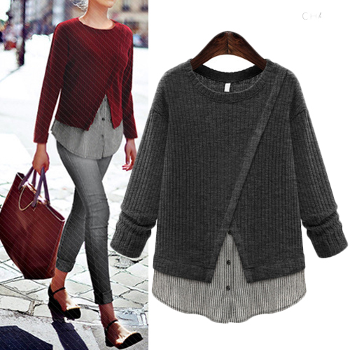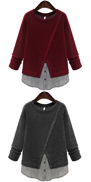It's a fashion trend. Creative hem spliced style would bring a stylish and eye-catching style. Round neck and