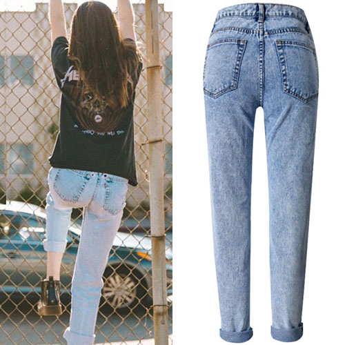 This piece has high waist and roll-up hem design complemented with a loose silhouette to give a
