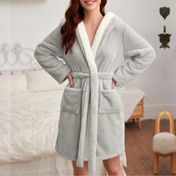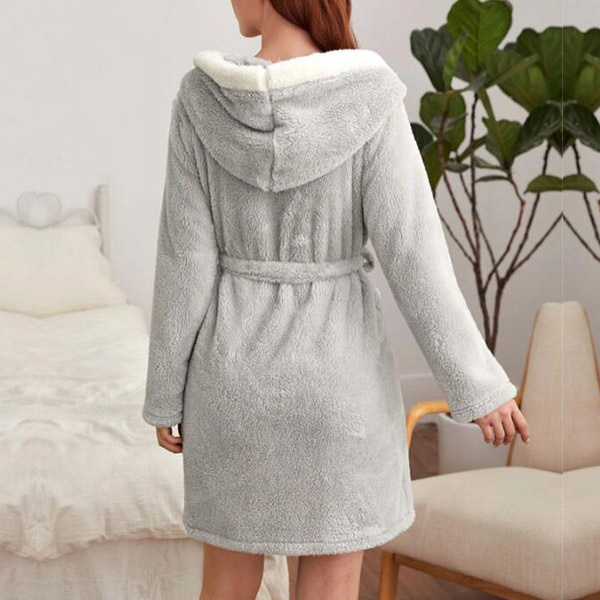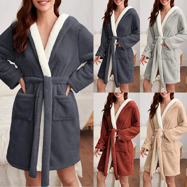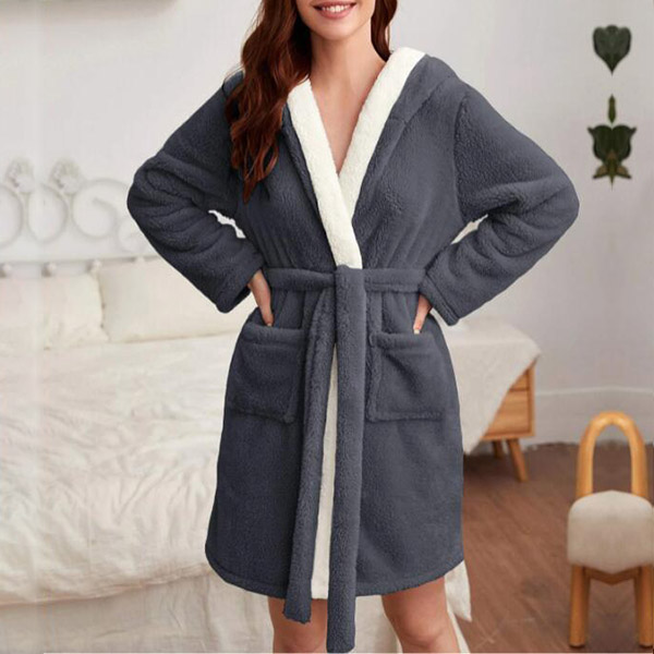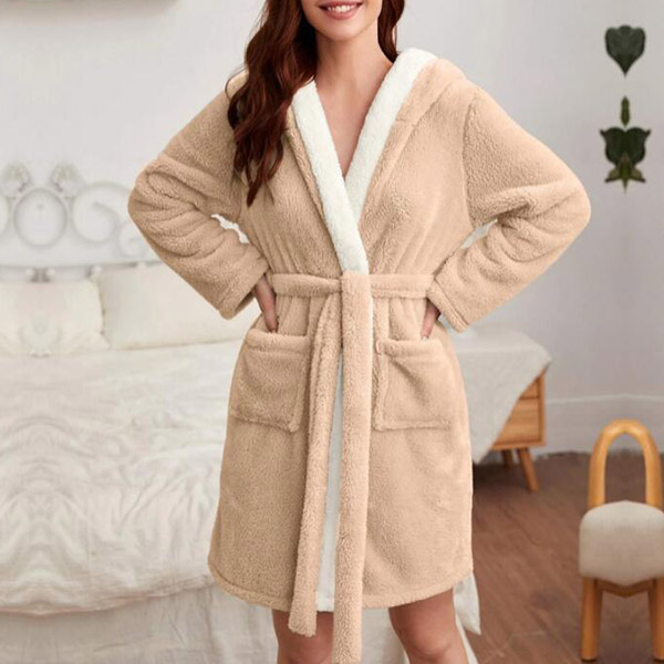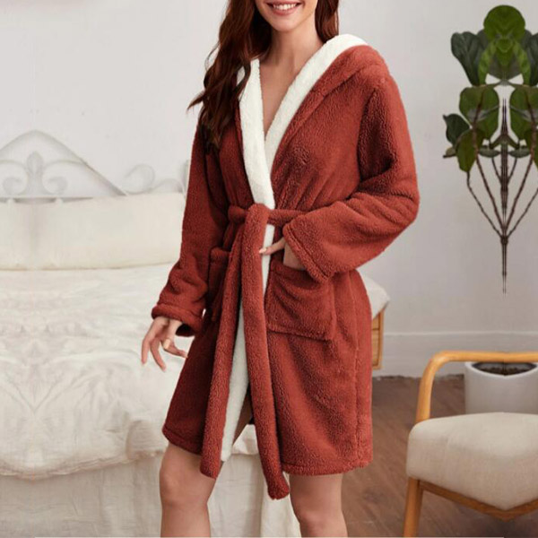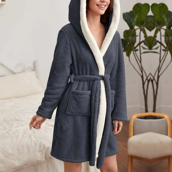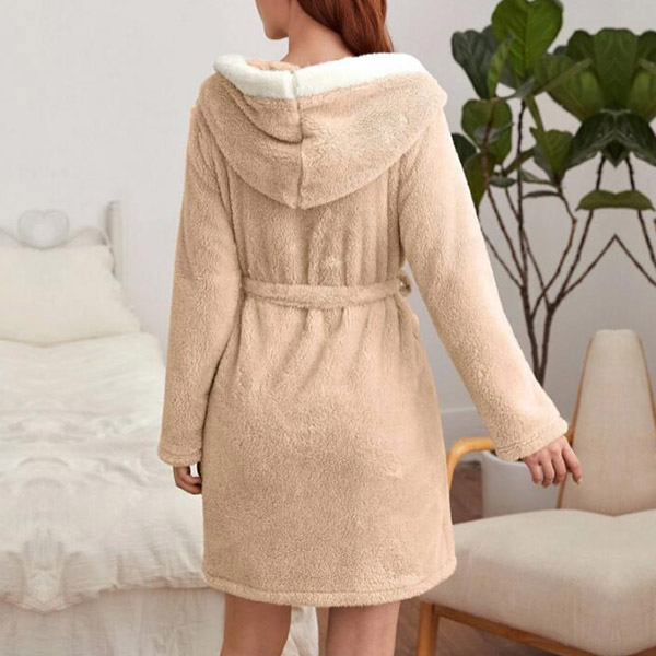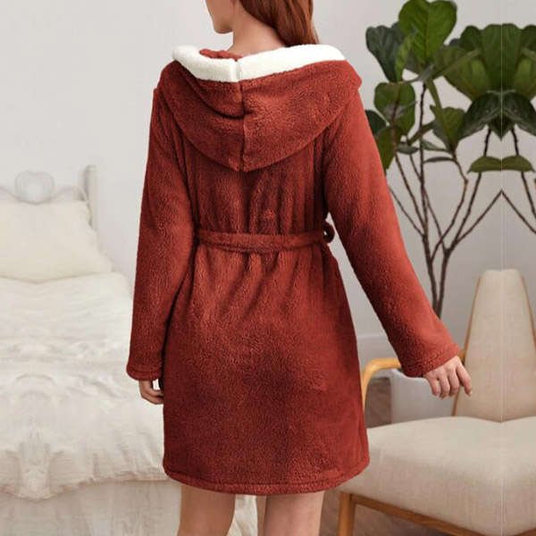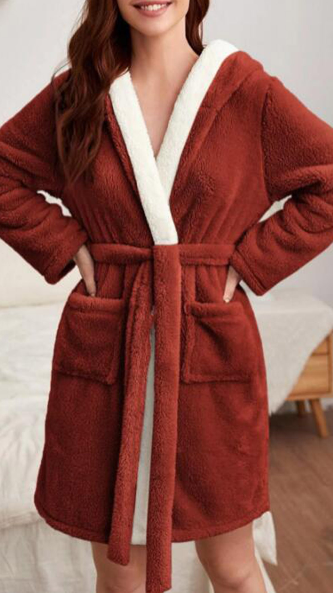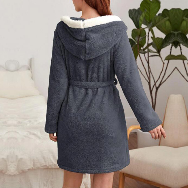 Stylish Self-tie Plush Longwear Robe with Contrast Color Design