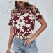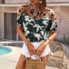 Stylish Semi-through Gauze Spliced Floral Printed Shirt