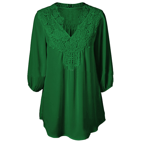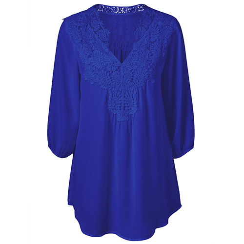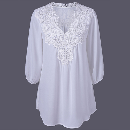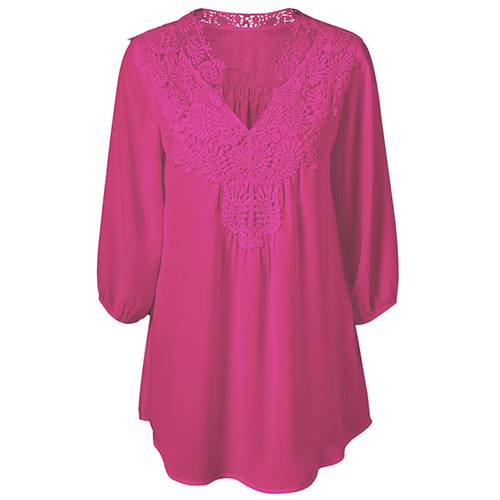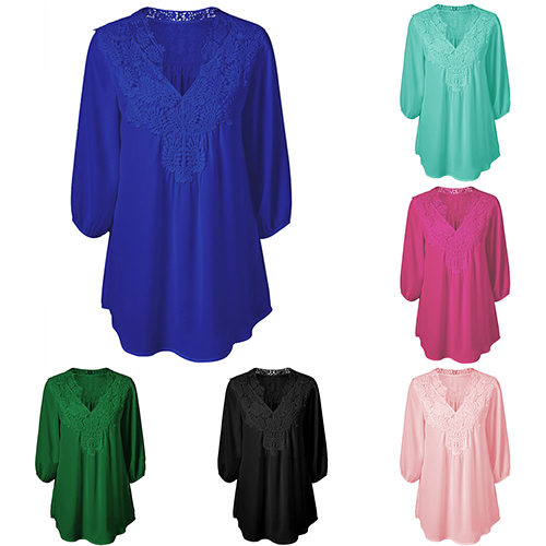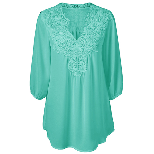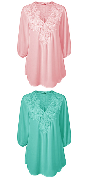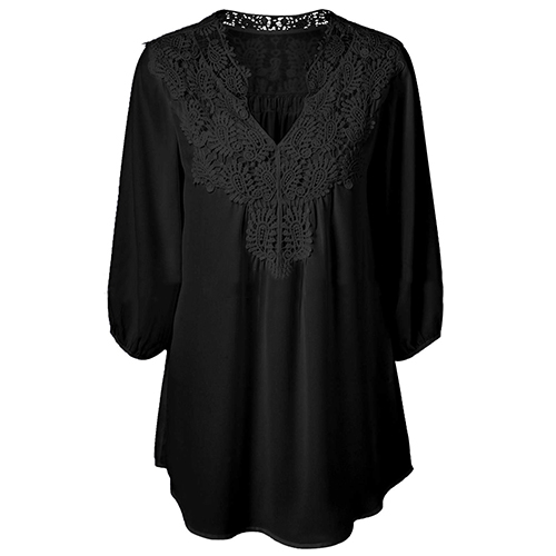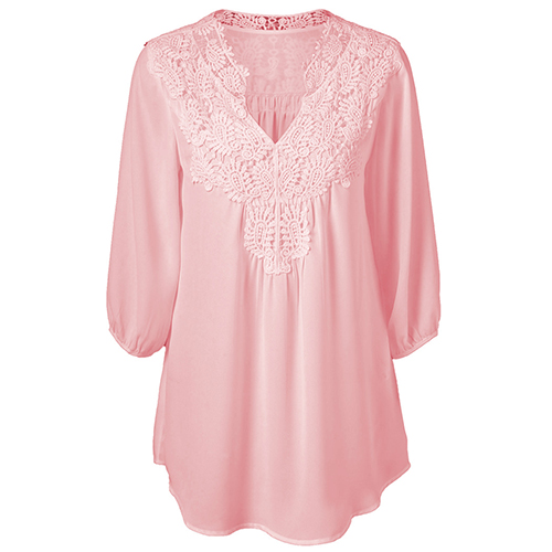 Soft and flowy chiffon material provides you long-lasting comfort. With v-neck, 3/4 sleeve and lace
