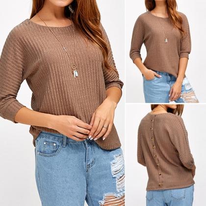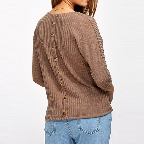 round neck design, its chic single-breasted design on the back makes this piece look more vogue