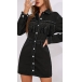 Stylish Stand Collar Long Sleeve Chain Tassel Denim Dress