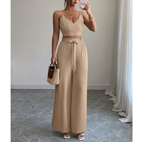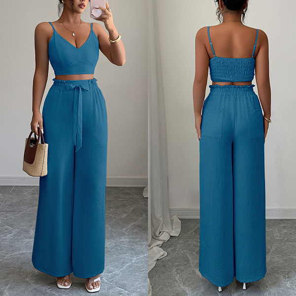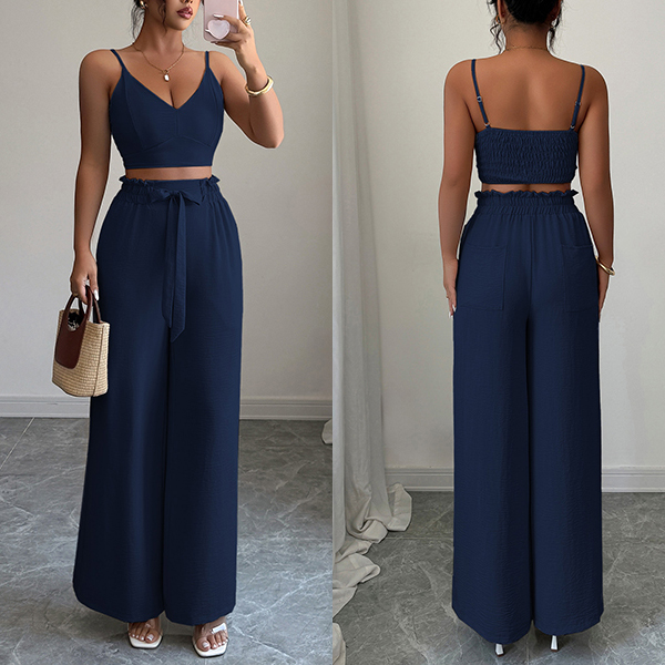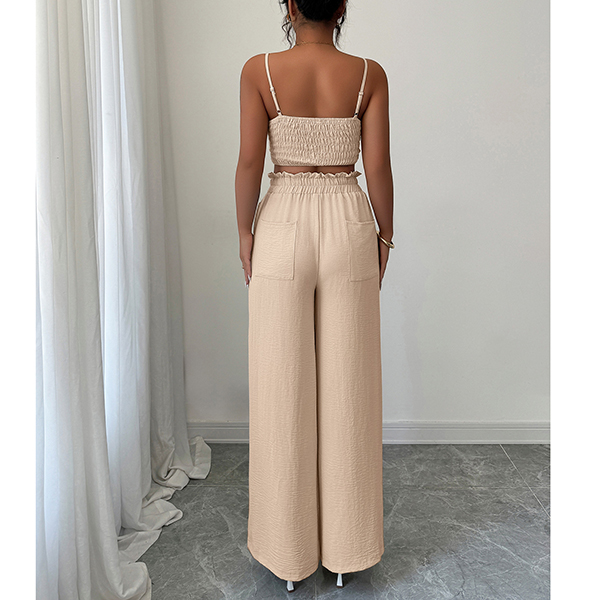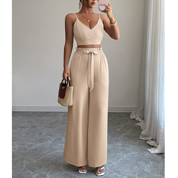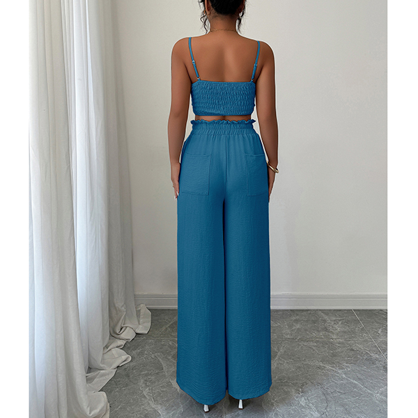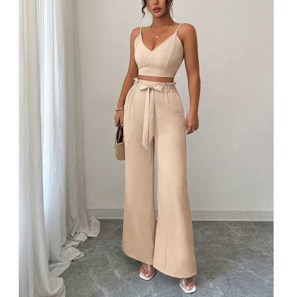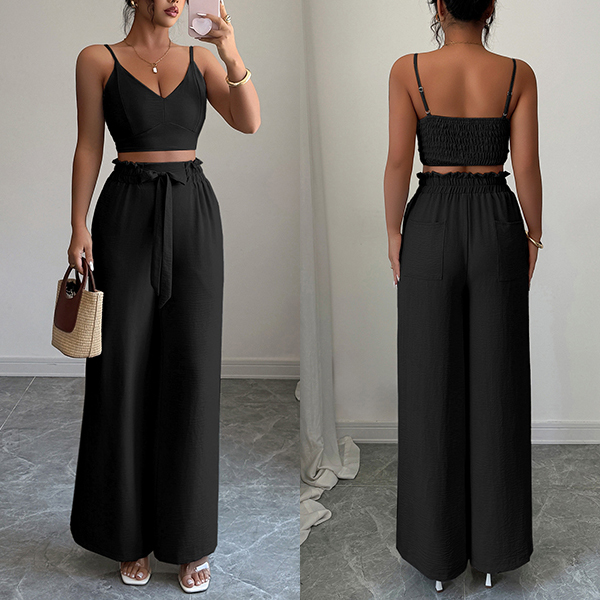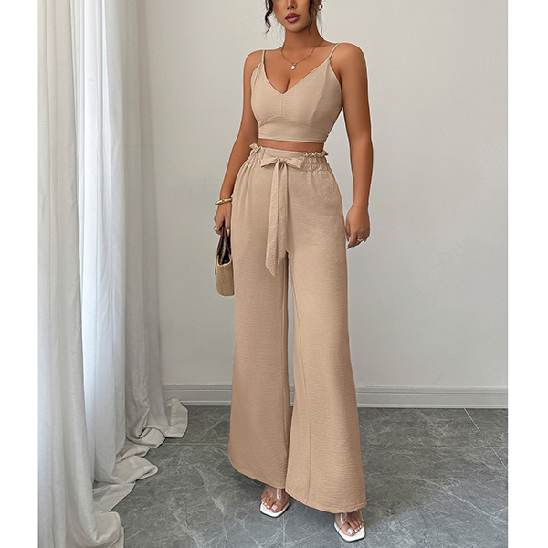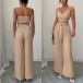 Suspender Vest and Wide Leg Pants Two Piece Suit