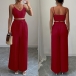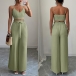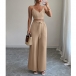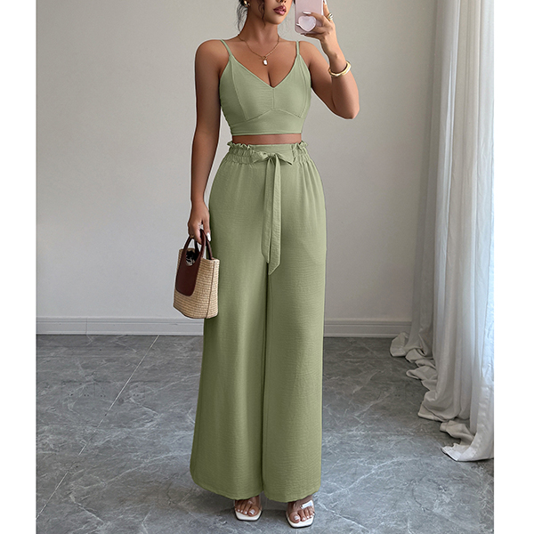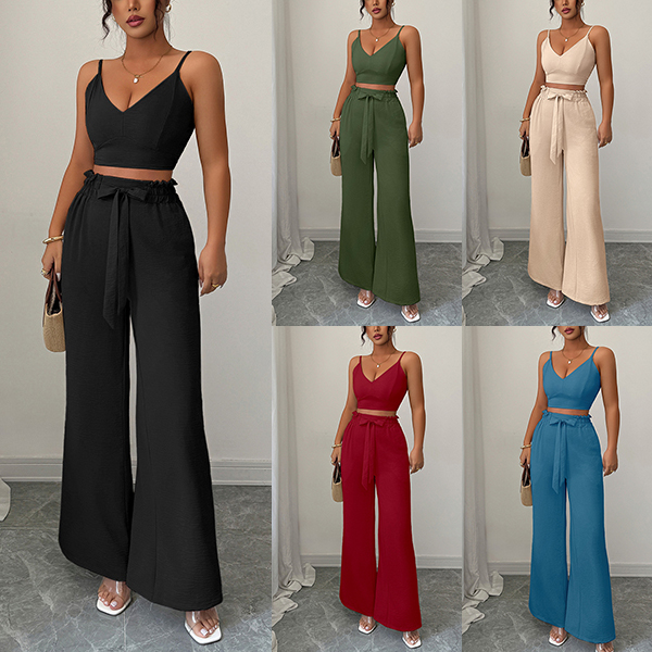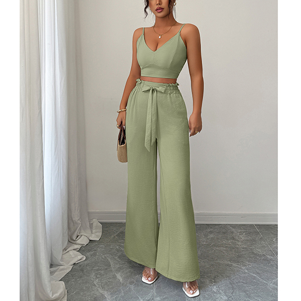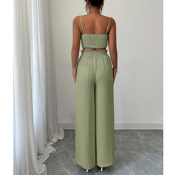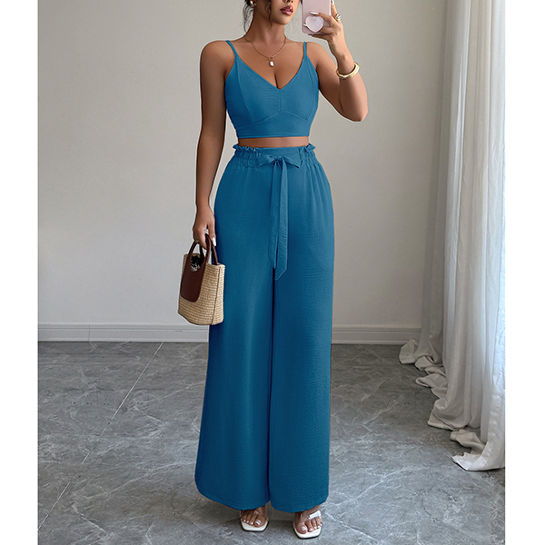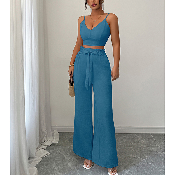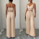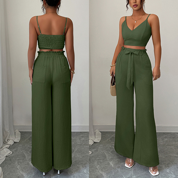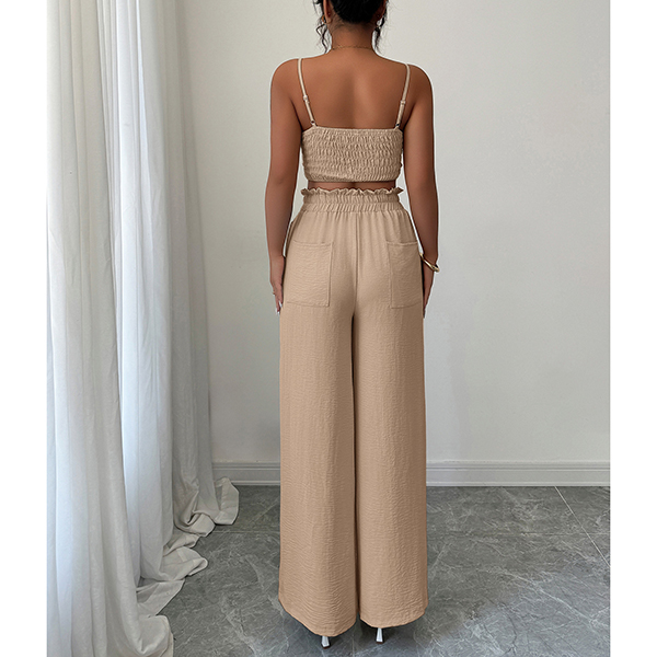 Suspender Vest and Wide Leg Pants Two Piece Suit