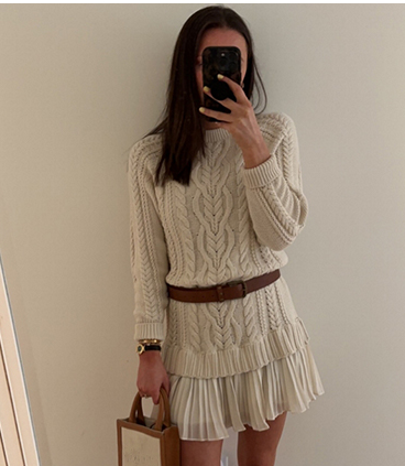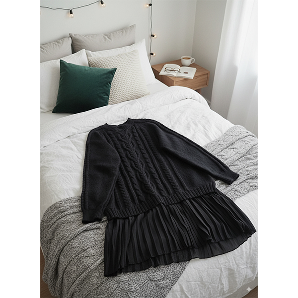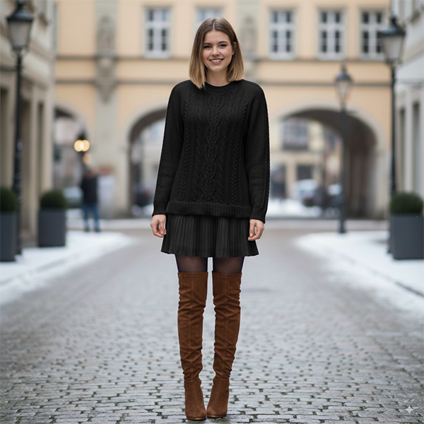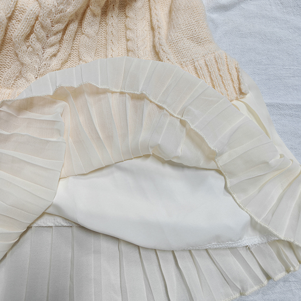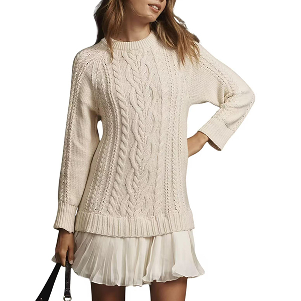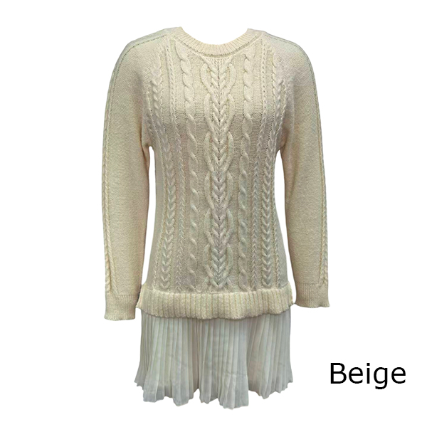 Elevate your everyday style with this versatile sweater dress that perfectly blends cozy comfort with feminine elegance. The classic cable knit construction provides warmth and texture, while delicate chiffon splicing at the pleated hemline adds a sophisticated touch that moves beautifully with every step. This dress offers the perfect balance of casual comfort and polished style for the modern woman who values both fashion and function. Hope you like it.