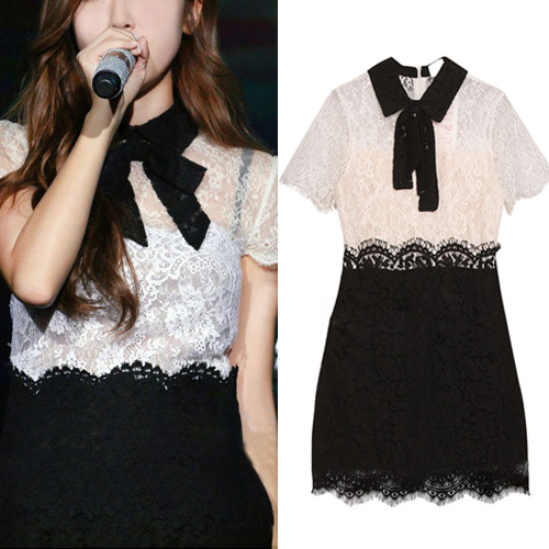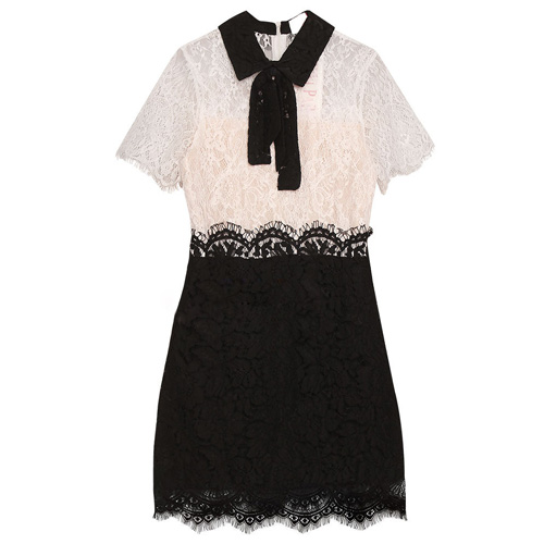 Sweet Contrast Color Bowknot Bow Tie Lace Dress