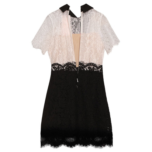 This lace dress features contrast color style,neckline with a bowknot bow tie design,