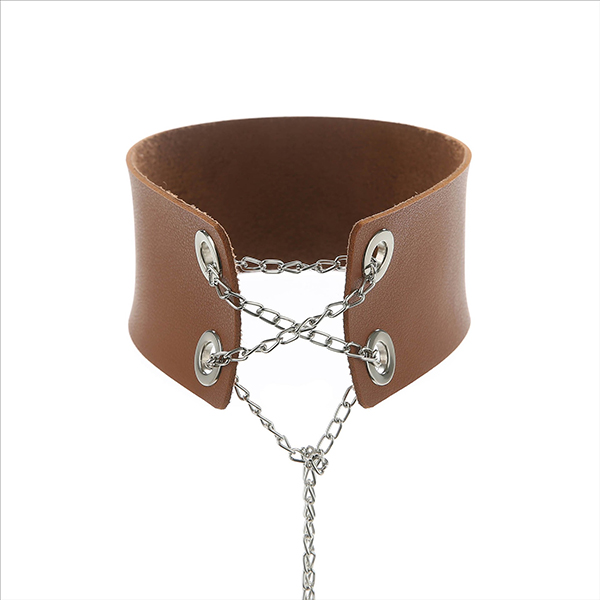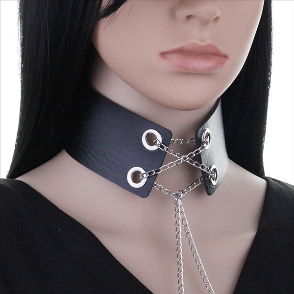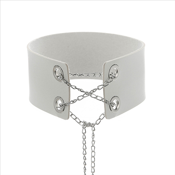 Sweet-Cool Metal Chain Necklace with PU Leather Collar in Punk Harajuku Style