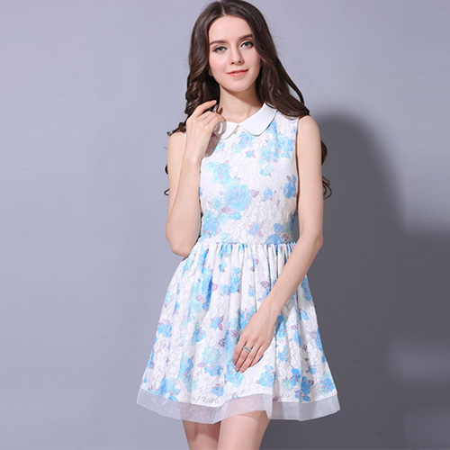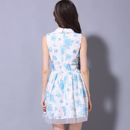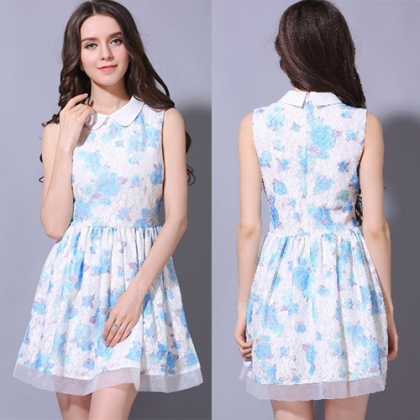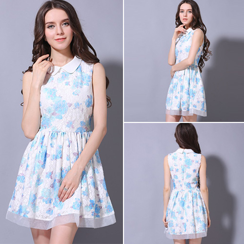 It features sweet doll collar design,with sleeveless,high waist and sweet floral print pattern.