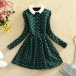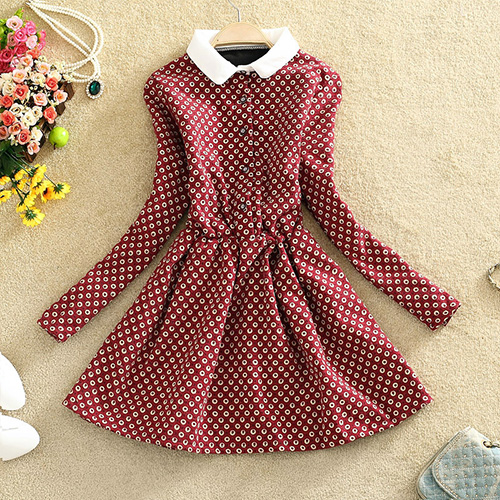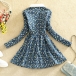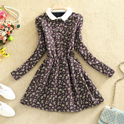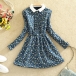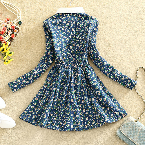Sweet Floral Print POLO Collar Long Sleeve Gathered Waist Dress