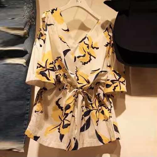 V-neck design adds its sexy flavor. Waist part with drawstring design,can show your slender figure.