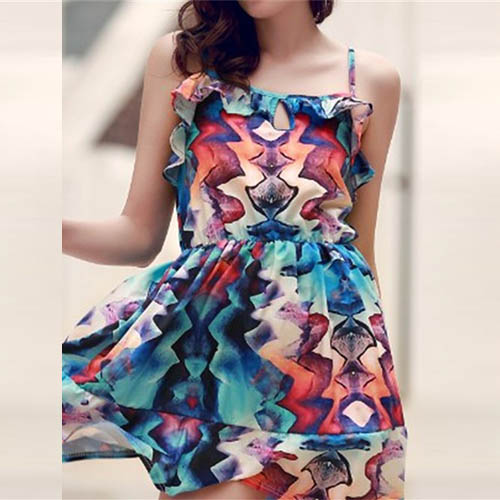 printed pattern and sweet flouncing design makes this dress look so charming. So why not