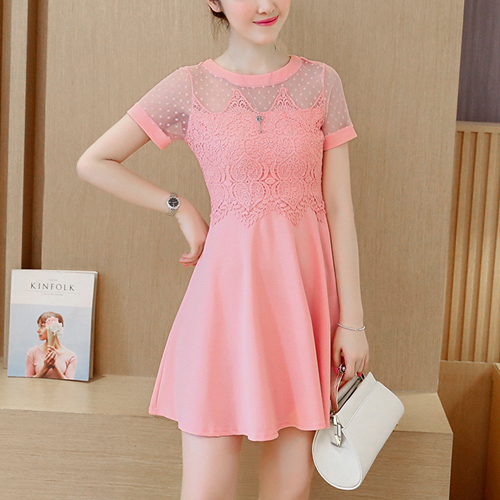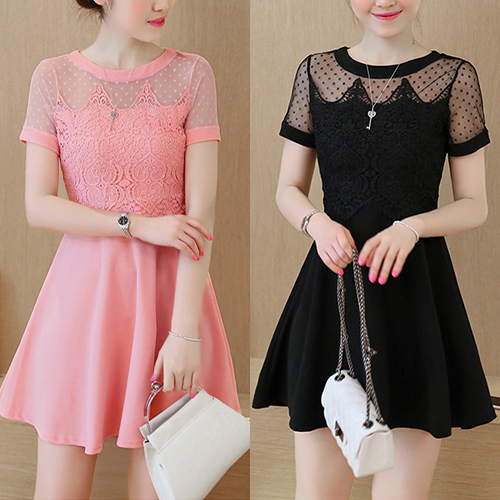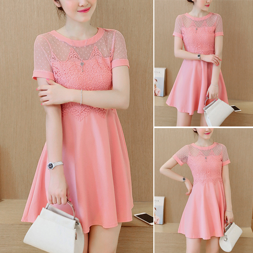 neck and short sleeve design, this dress can easily show your elegant and charming.