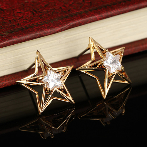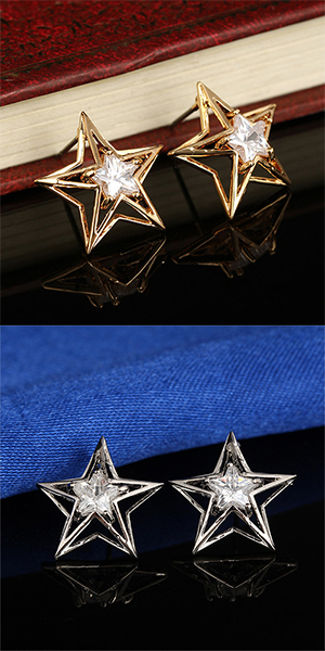 Shaped with hollow out pentagram, inserted with a pretty zircon, it perfect highlights your fashion