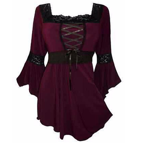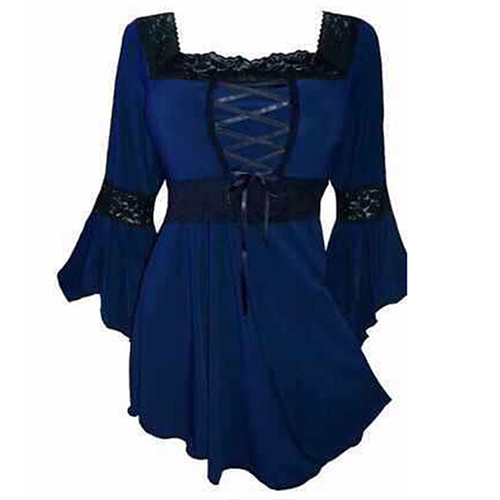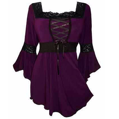 Inject some fresh blood into your closet with this dress. Lace spliced style,with trumpet sleeve,square collar