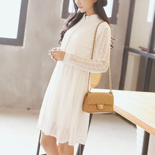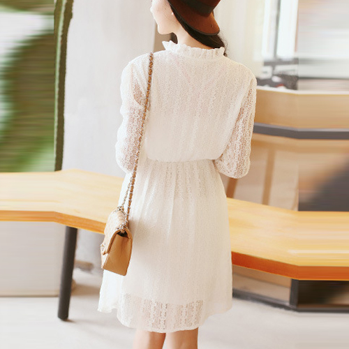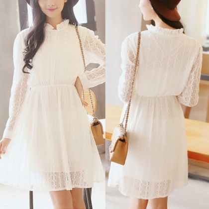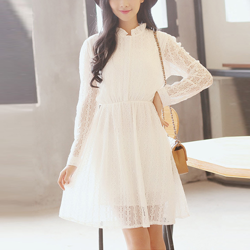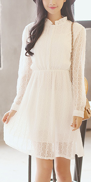 Show your sweet and fresh style through this dress. It features see-through style,with lace stand collar,