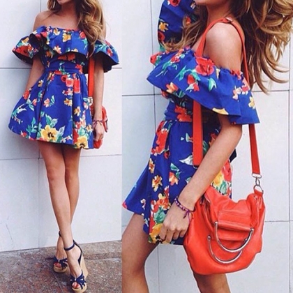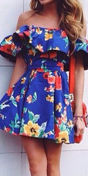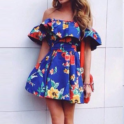 well with this dress. Boasting pretty print pattern, with off shoulder, ruffle and gathered design, this