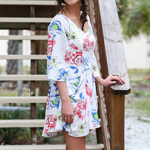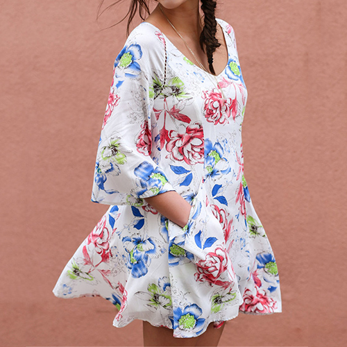 pattern, round neck, half sleeve and 2-side pockets design, romantic and beautiful. Paired with your