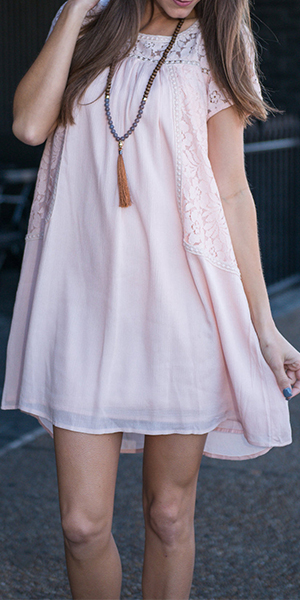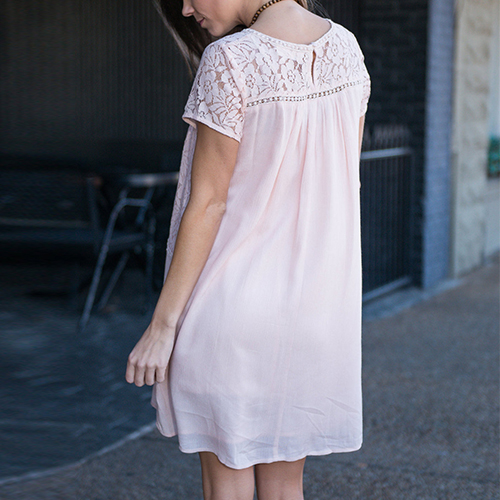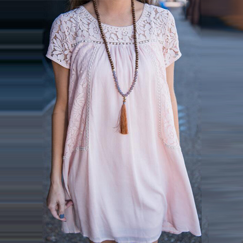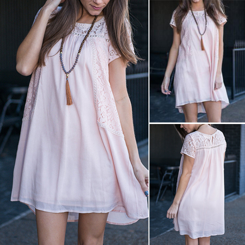 round neck, short sleeve and lace spliced, chic, sweet and trendy. A relaxed silhouette, perfect for