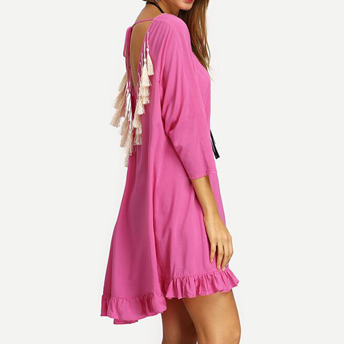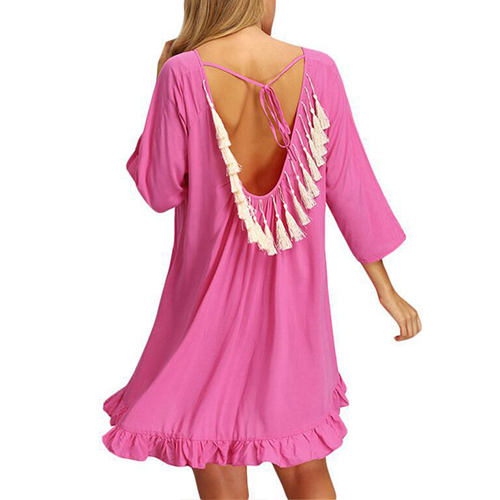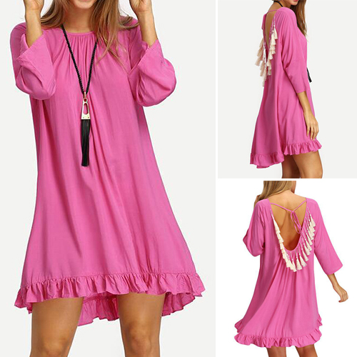 Prepare a sweet and romantic dating with this dress. Outfitted with round neck, backless and ruffle design,