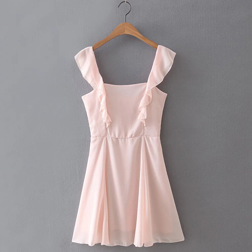This pretty and sweet dress is designed for you. Solid color style, featuring sleeveless, backless and