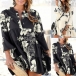 Sweet Style 3/4 Sleeve V-neck Ruffle Hem Loose Printed Dress