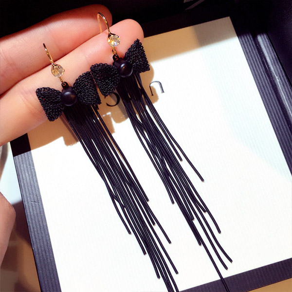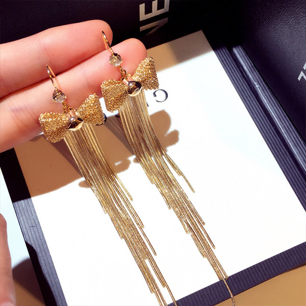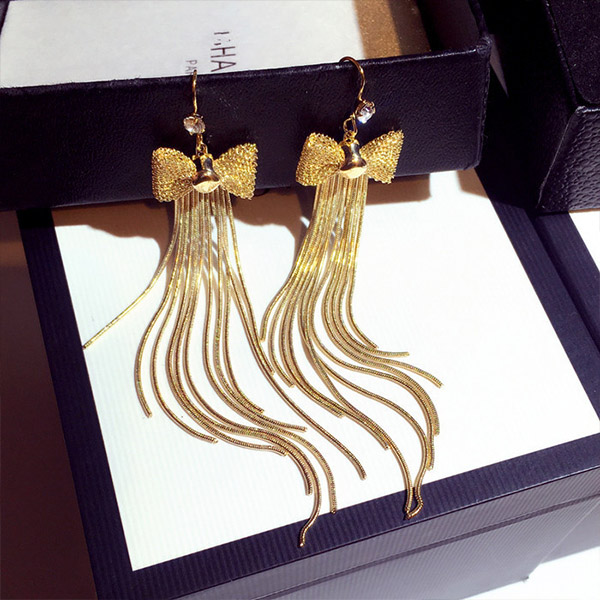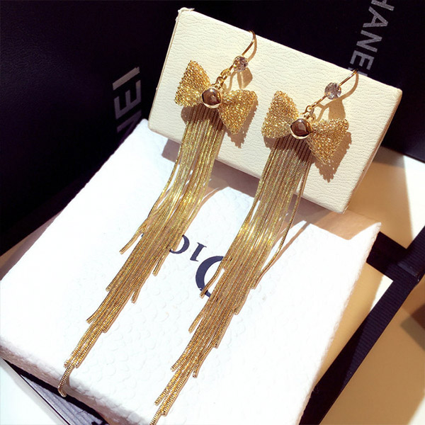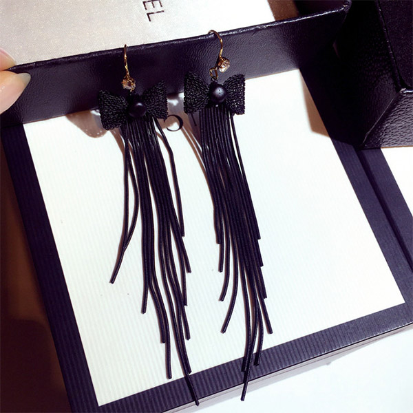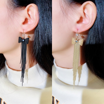 Make your daily look more beautiful and charming by adding this pair of earrings. The bow-knot and long tassel design make it full of sweet and stylish vibes. It is a perfect addition for a stunning look.