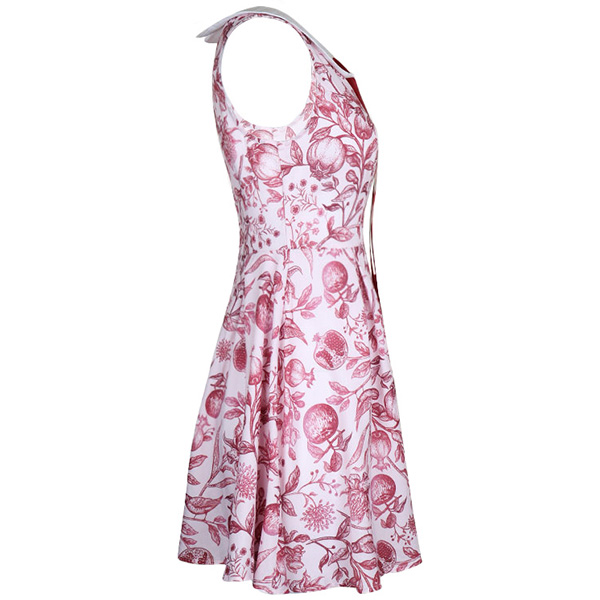 Sweet Style Floral Printed Doll Neck Bowknot Sleeveless Dress