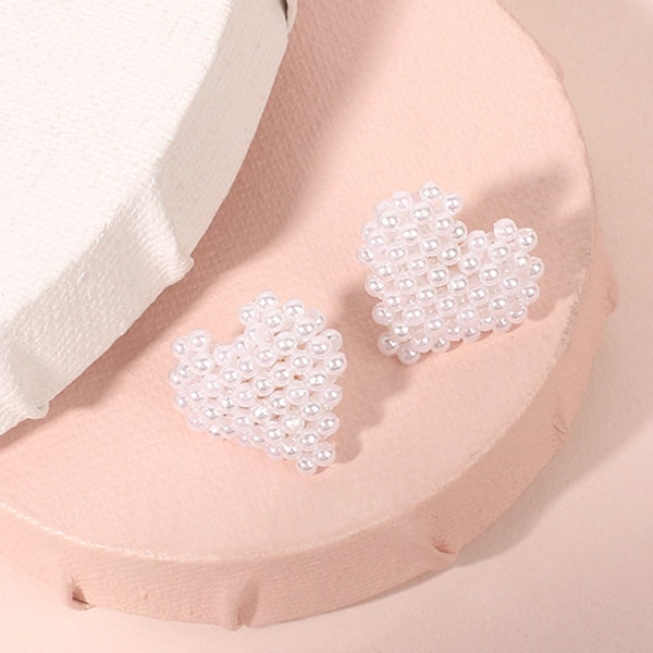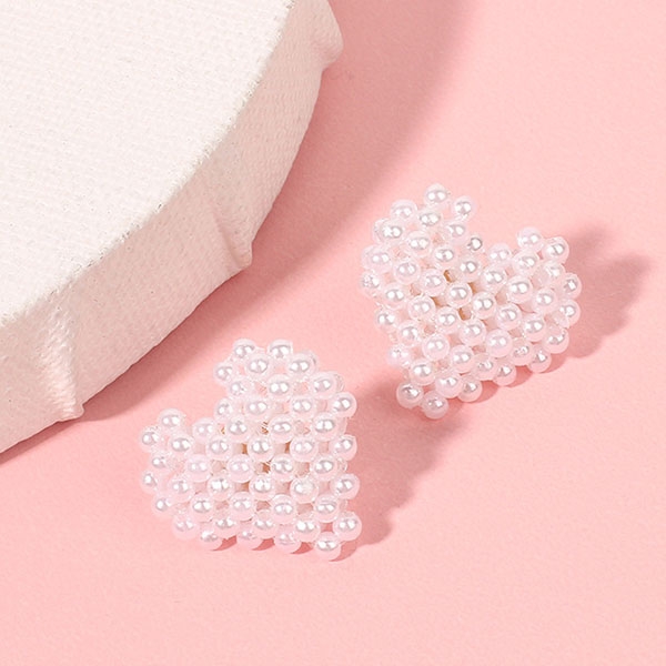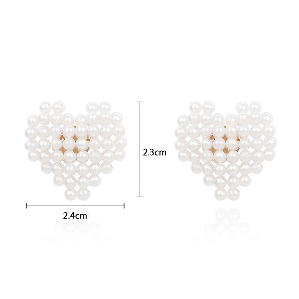 Sweet Style Imitation Pearl Inlaid Heart Shaped Stud Earrings