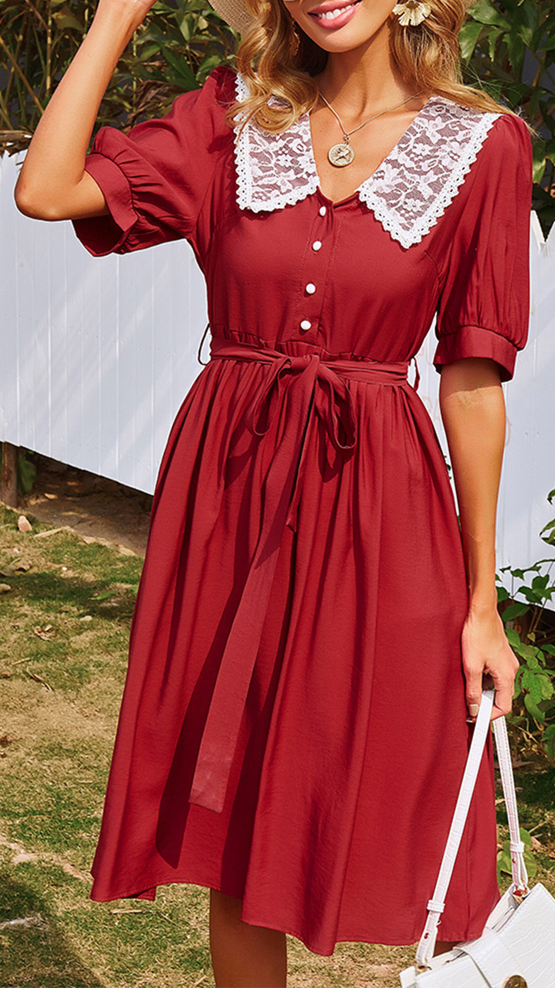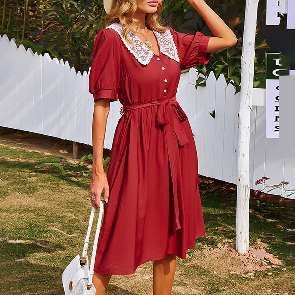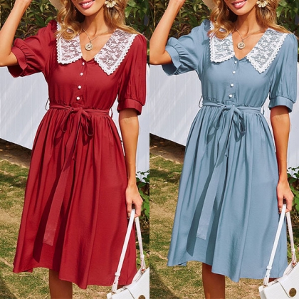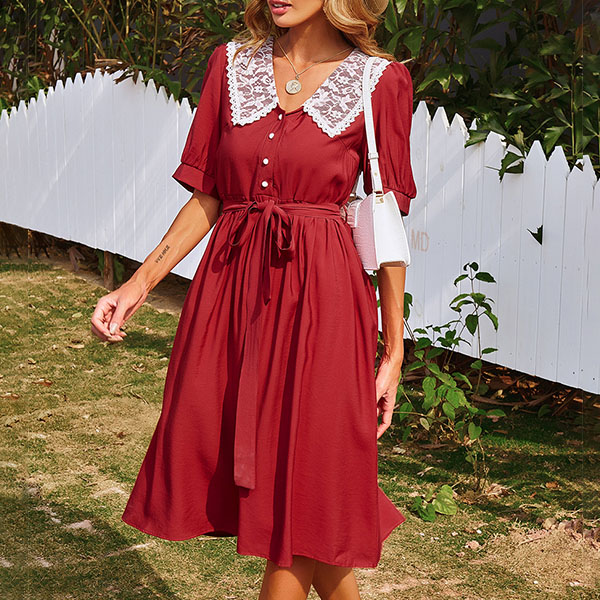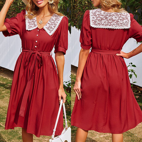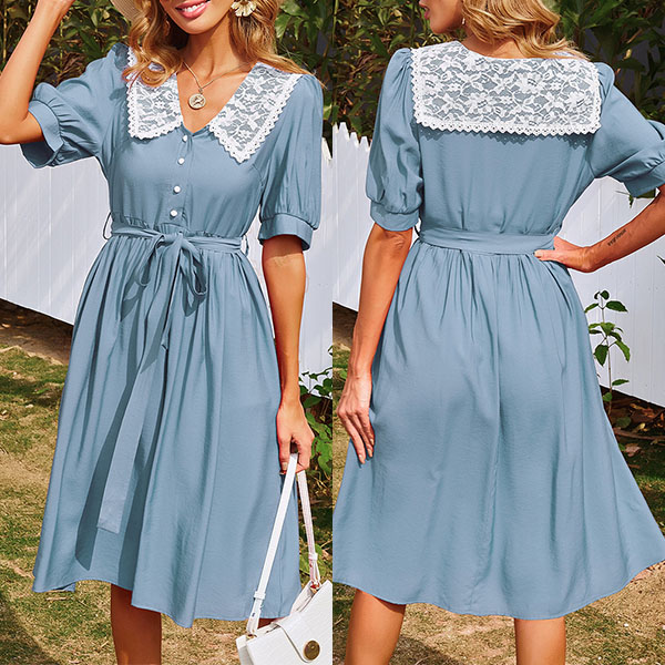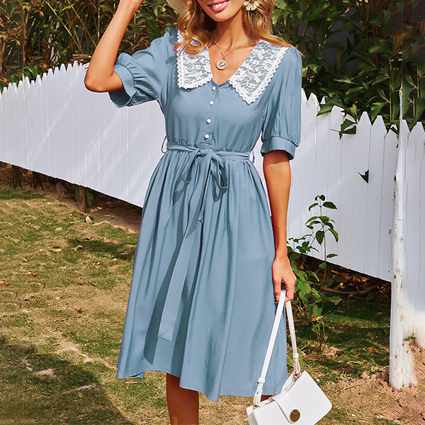 Still having no idea about what to wear for your busy workdays and weekend dating? Then this sweet dress would be your perfect solution. The lace spliced doll collar design can make you look young and energetic. Trust me,this dress is worth to be your timeless wardrobe staple in these summer days.