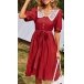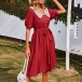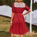 Sweet Style Lace Spliced Doll Collar Short Sleeve Elastic Waist Dress