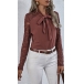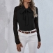 Combines of sassy and sweet vibes,this shirt can easily strike your mind. The lace spliced long sleeve and lace-up bow-knot collar design are the highlights,which make this piece look so attractive. All-match design allows to be matched with different style bottoms.