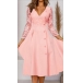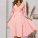 Wow,you look so sweet and charming in this dress.Comes with a popular sweet pink,the v-neck and lace spliced details will help enhance your feminine appeal,while the high waist and fit silhouette design will portray your slender figure. For your fancy events like night party or weekend gatherings,this dress would be your wise choice.