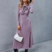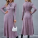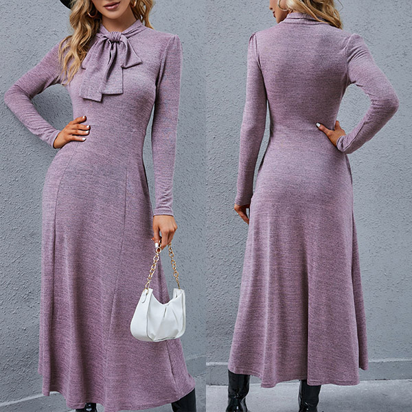 This dress comes with a noble purple tone,finished with long sleeve,high waist and a clean,fit silhouette,which can portray your elegant and charming image. Moreover,the lace-up bow-knot collar design will lend you some sweet and sassy vibes. Just enrich your wardrobe with this wonderful piece.