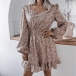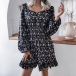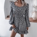 Sweet Style Lantern Sleeve Square Collar Ruffle Hem Printed Dress