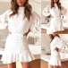 Wanna a sweet and charming dating look? Then you can dress yourself up with this two-piece set! It consists of a lantern sleeve stand collar top and a high waist ruffle hem skirt,this two-piece set is a good weapon to o express your flirty yet feminine side. Add this two-piece set to your wardrobe and it won't let you disappointed!