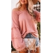 Sweet Style Lantern Sleeve V-neck Solid Color Ruffle Top