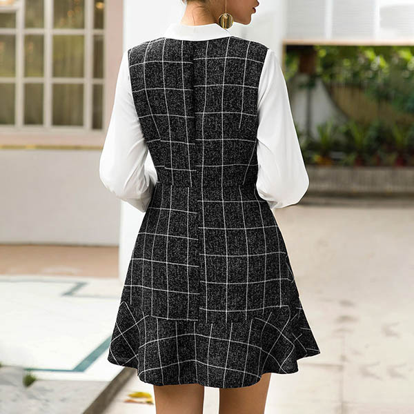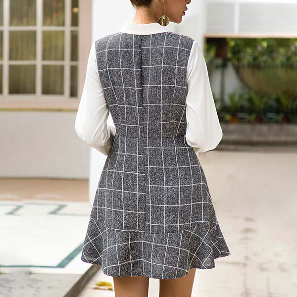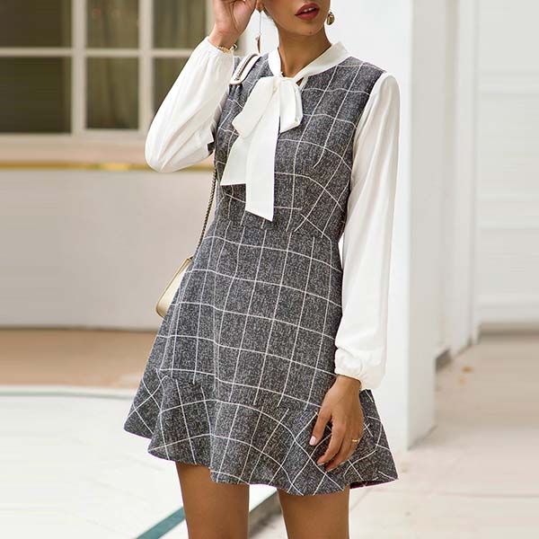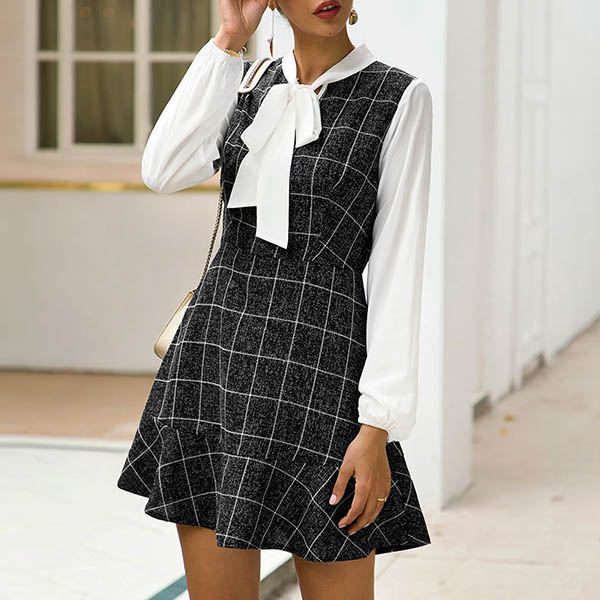 When you have a dating with your boyfriend,you can choose this dress to have a sweet and charming look. Plaid spliced element design enriches the design style,while the ruffle hem and bow-knot collar design can better exude your sweet and feminine side. You can easily win his eyes when you don this dress!