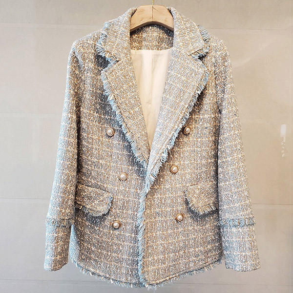 Sweet Style Long Sleeve Double-breasted Slim Fit Tweed Coat