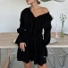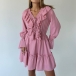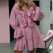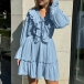 Sweet Style Long Sleeve Lace Spliced V-neck Ruffle Dress