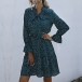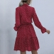 Sweet Style Long Sleeve Lace-up Bow-knot Collar Dots Printed Dress