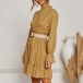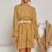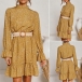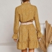 Sweet Style Long Sleeve Mock Neck Ruffle Hem Printed Dress