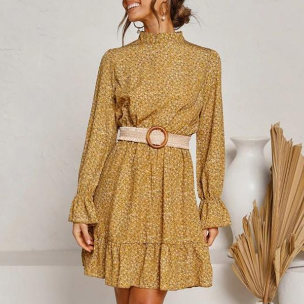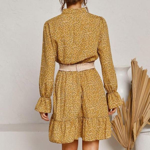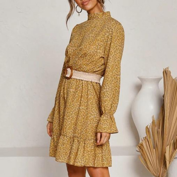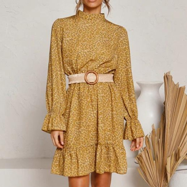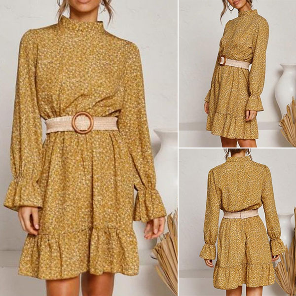 You can easily achieve for a fresh,sweet and charming daily look with the help of this dress. Features vibrant floral print details,finished with long sleeve,mock neck and ruffle hem design,this dress makes it easy for any girl to look effortlessly charming and beautiful.