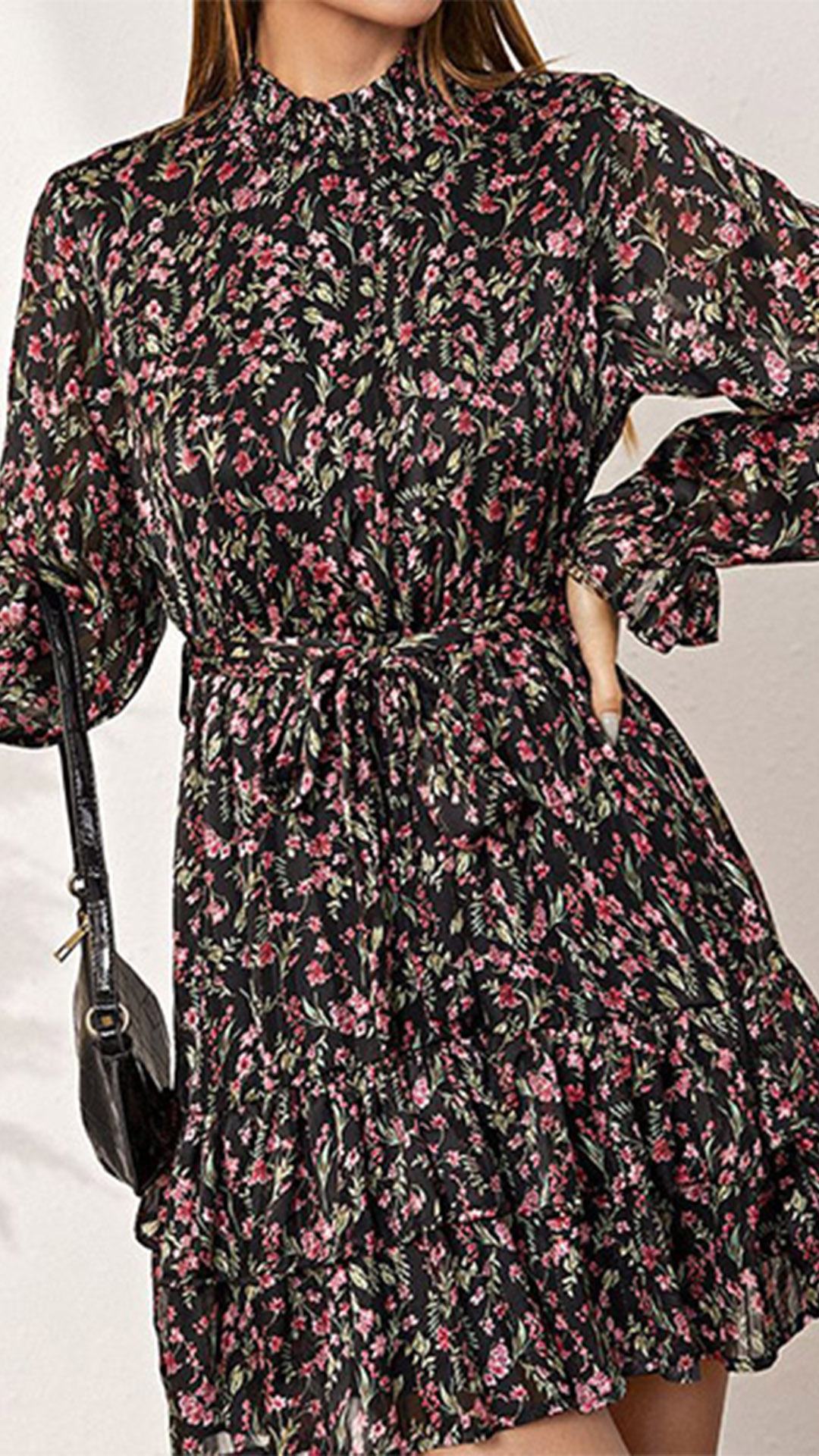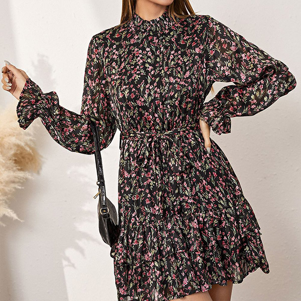Make your wardrobe more colorful by adding this printed dress. Its vibrant floral print details make this piece look so eye-catching,while the ruffle hem design will lend you some sweet vibes. No matter for your daytime out or night dating,this dress can give you an easy transition.