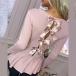 Sweet Style Long Sleeve Round Neck Back Bow-knot Top