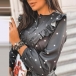 Sweet Style Long Sleeve Round Neck Dots Printed Ruffle Shirt