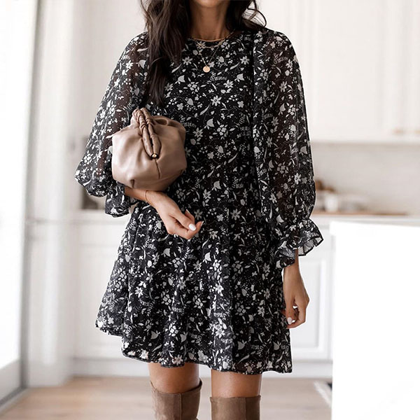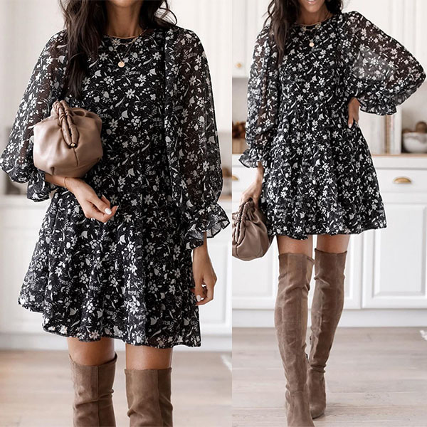 As for a fresh and sweet daily look,you can just make your eyes focused on this dress. Features vibrant floral print details,finished with long sleeve,round neck and high waist design,this dress can give you an easy transition from your daytime out to night dating!