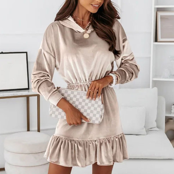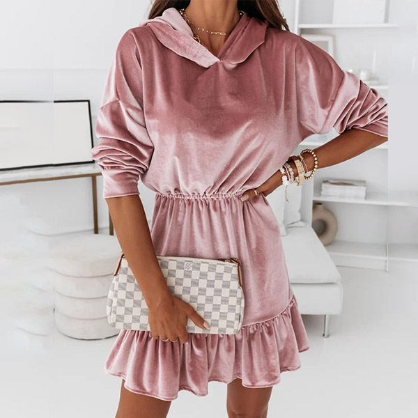 When you have this dress in your team,you don't need to worry about what to wear for your daily out. Solid color style,the ruffle hem design can lend you some sweet and feminine vibes,while the hooded silhouette design can maintain the casual,relaxed style. You just need to slip into this dress and match with your favourite shoes,then you can start your wonderful day.
